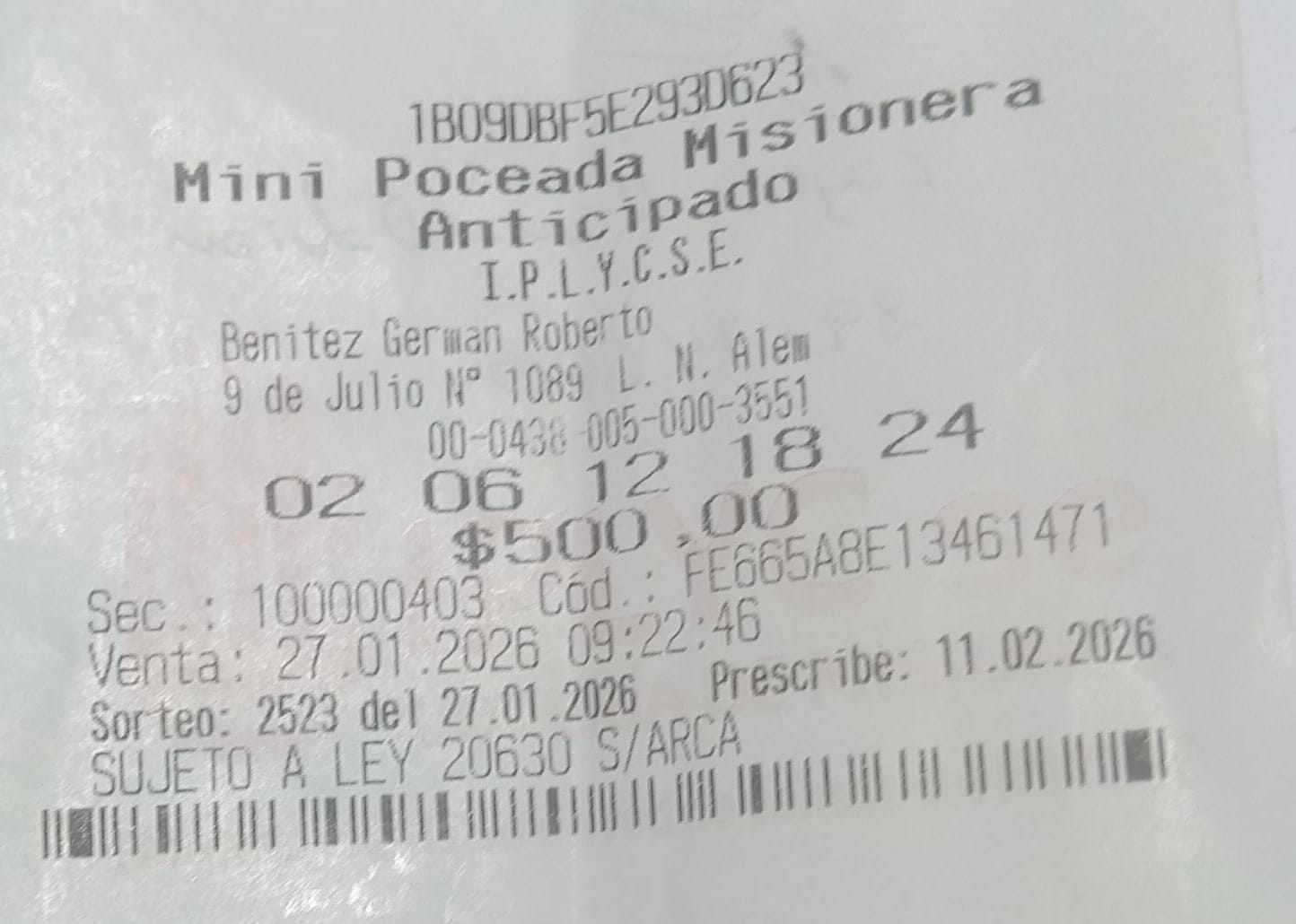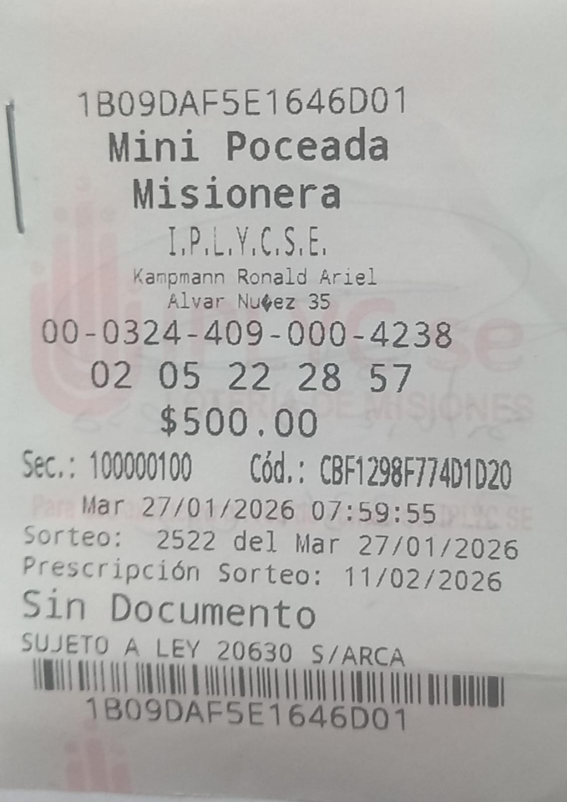 Un trabajador de la ciudad de Leandro N. Alem se ganó el primer premio de la Quiniela Mini Poceada este 27 de enero y se llevó 53.854.702 pesos, cifra récord de este juego...