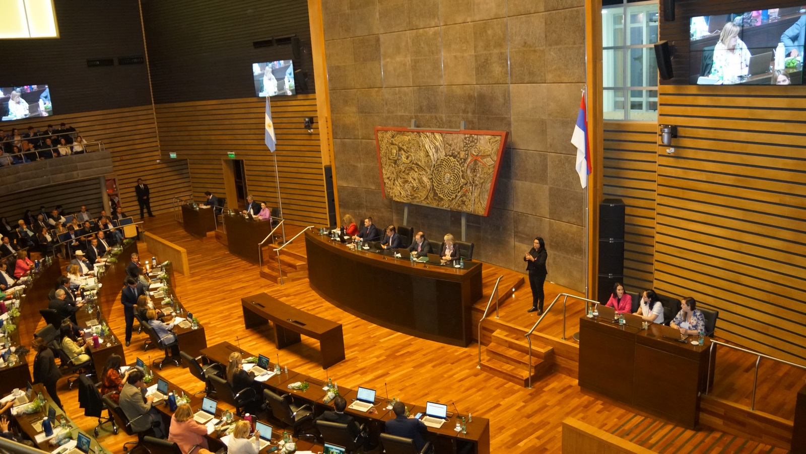 Antes de la sesión, se realizó en el hall del edificio histórico un homenaje a Melchora Caburú. Dicha iniciativa fue promovida por la legisladora Soledad Balán con el fin de poner en valor y reconocer la figura de “La Melchora” como una protagonista de la historia de la lucha en defensa de nuestro territorio.