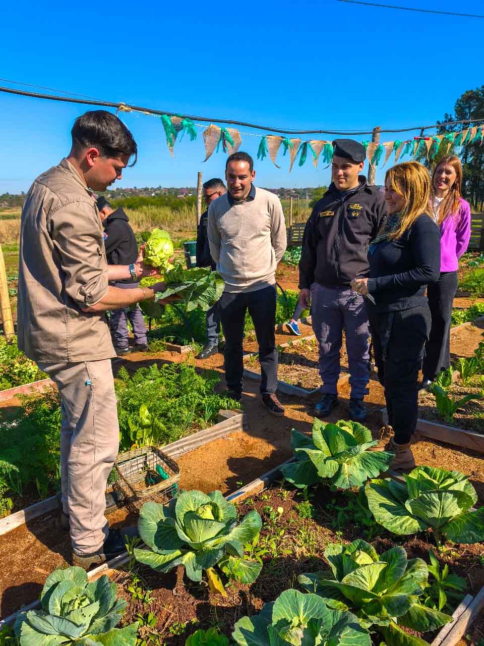 La actividad incluyó una primera cosecha simbólica de la huerta y la plantación colectiva de una cortina de especies nativas, acción que fortalece la huerta del establecimiento y promueve el cuidado de la biodiversidad.