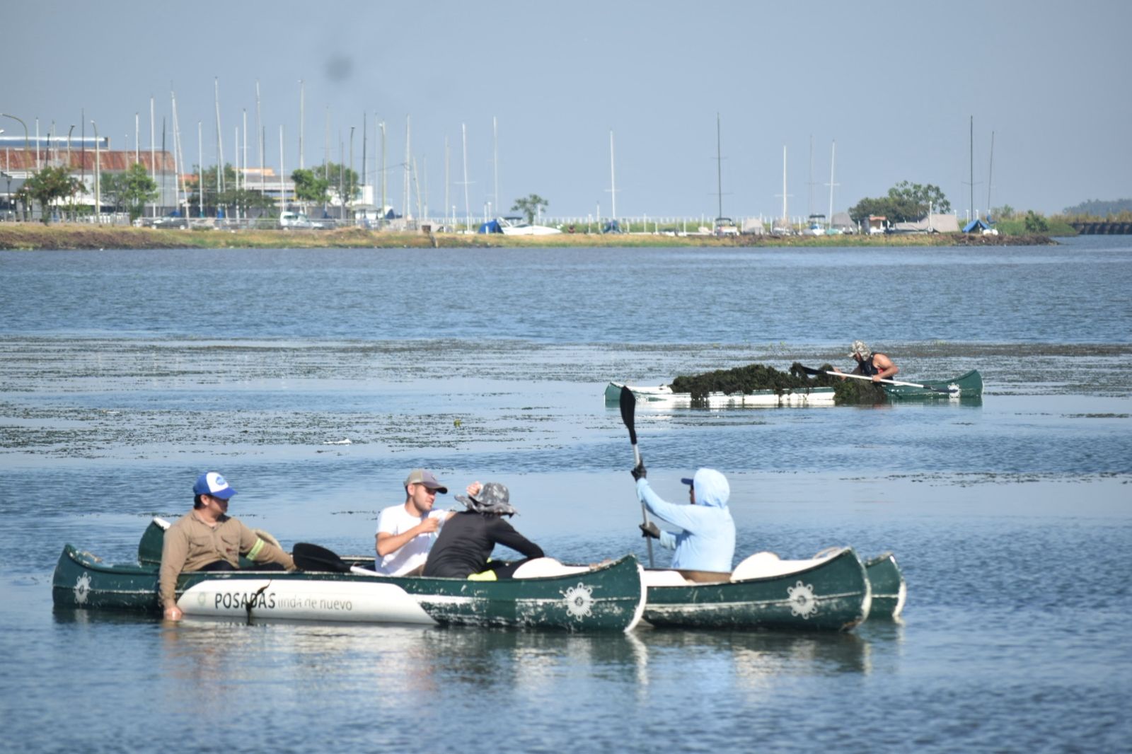 Equipos de trabajo de la Municipalidad de Posadas desarrollan acciones para liberar de algas a la zona cercana a la bahía El Brete. Recomiendan que ante cualquier coloración...