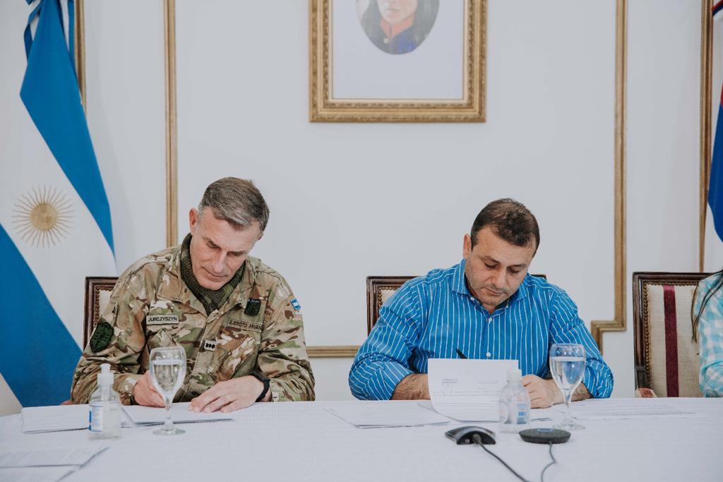 POSADAS, MARTES 16 DE AGOSTO DE 2022. Esta mañana, en la Sala de Situación de Casa de Gobierno, el gobernador Oscar Herrera Ahuad y el comandante de la Brigada de Monte XII Sergio Jurczyszyn firmaron un convenio para avanzar con el dictado de capacitaciones de instrucción técnica y en oficios con el fin de complementar la formación militar de los jóvenes recientemente incorporados. Esta oferta les brindará la oportunidad de contar con conocimientos sobre un oficio que les servirá en cualquiera de los caminos que elijan, ya sea continuar en la rama militar o fuera de ella.