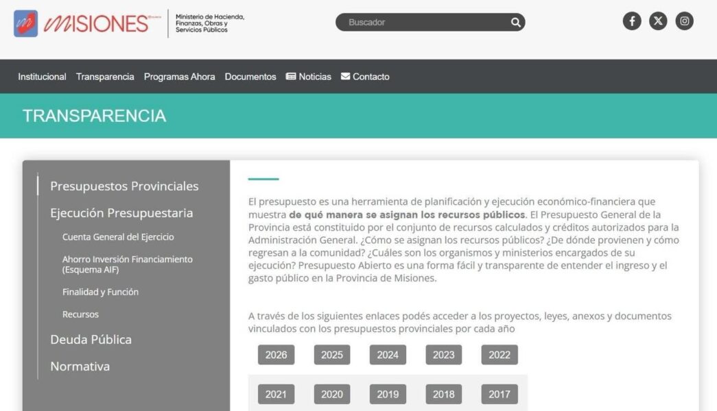 El índice ITPP evalúa anualmente en cada jurisdicción la disponibilidad, nivel de detalle y actualización de la información presupuestaria que las provincias publican en sus sitios oficiales; en Misiones a través del sitio https://hacienda.gob.ar/transparencia/