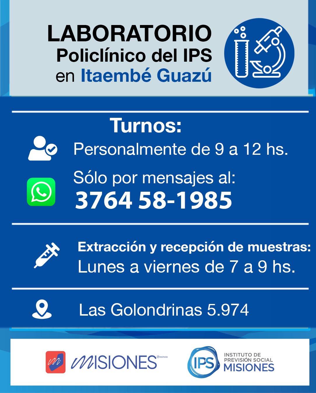 A partir del 12 de abril, sumamos un nuevo laboratorio propio en el Policlínico de Itaembé Guazú, para seguir ampliando y acercando nuestros servicios a todos los afiliados.