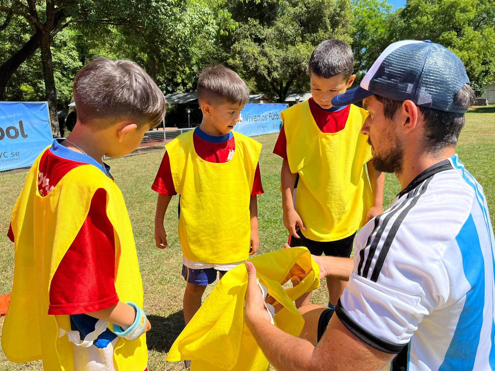 El miércoles, 30 chicos de la Chacra 146 fueron parte del recreo, con sus hinchadas y chalecos coloridos, festejando los goles de la victoria.